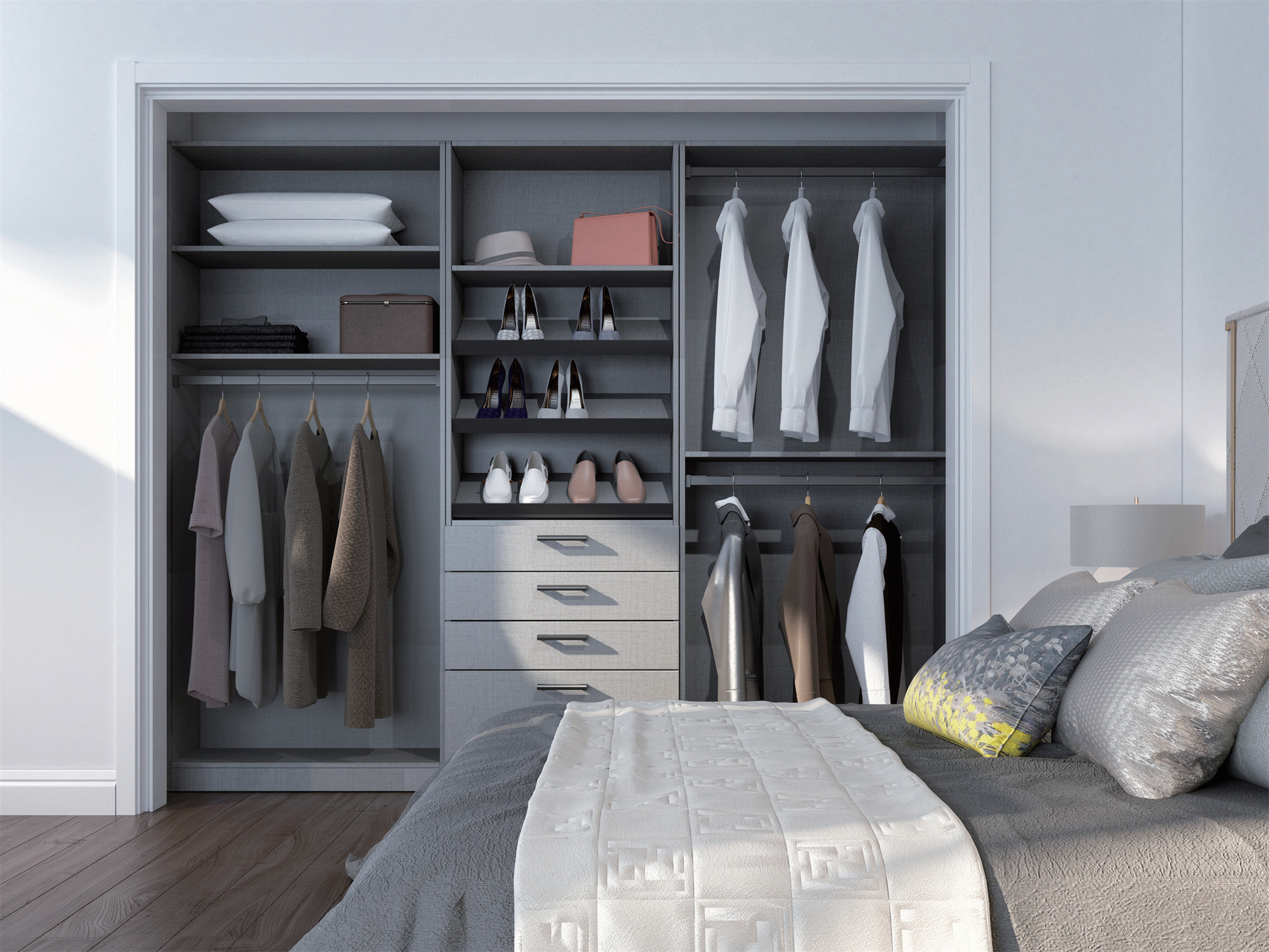 Versatile closet with modularity and exquisite details , for the unique characters of each home