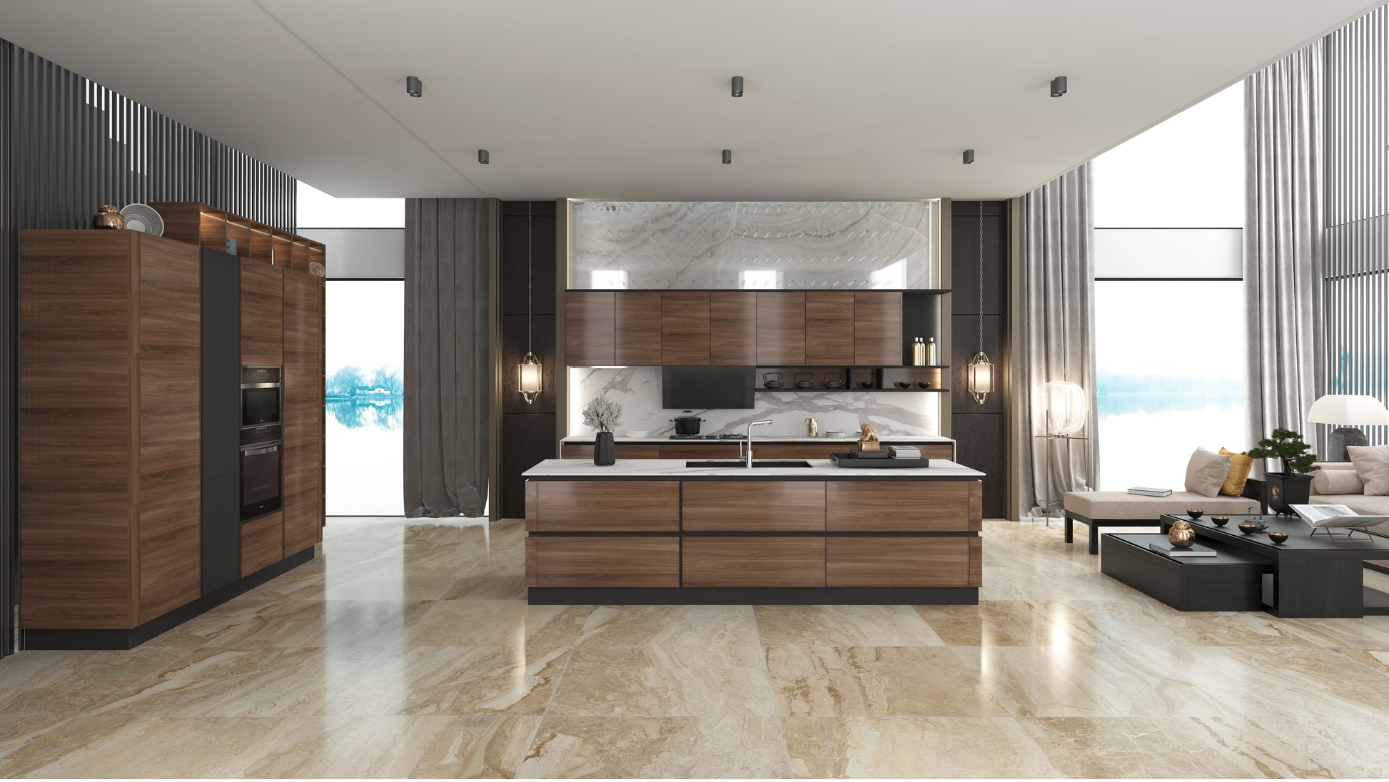 GoldenHome offers a variety of cabinet door panel options, including integrated panels, lacquer, thermofoil, and solid wood.